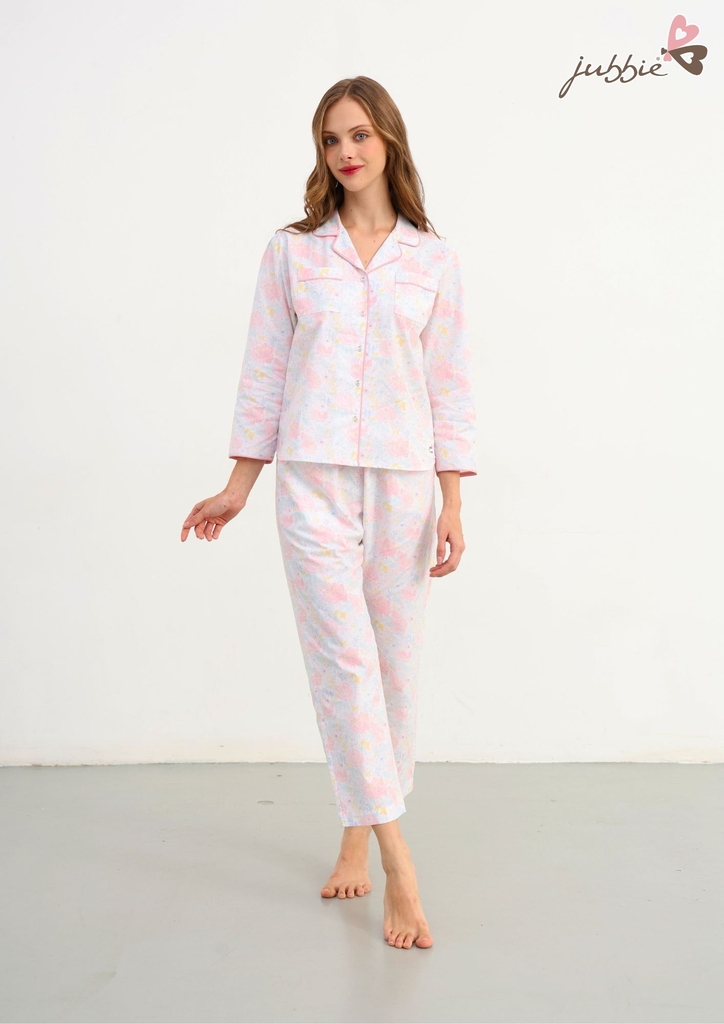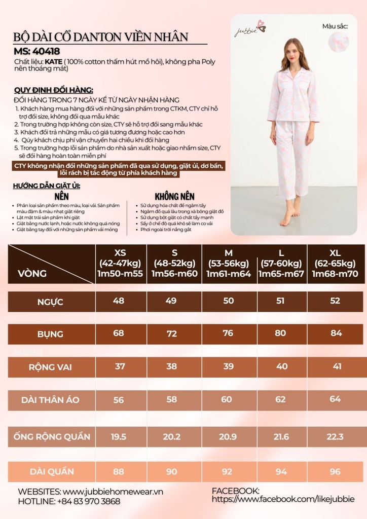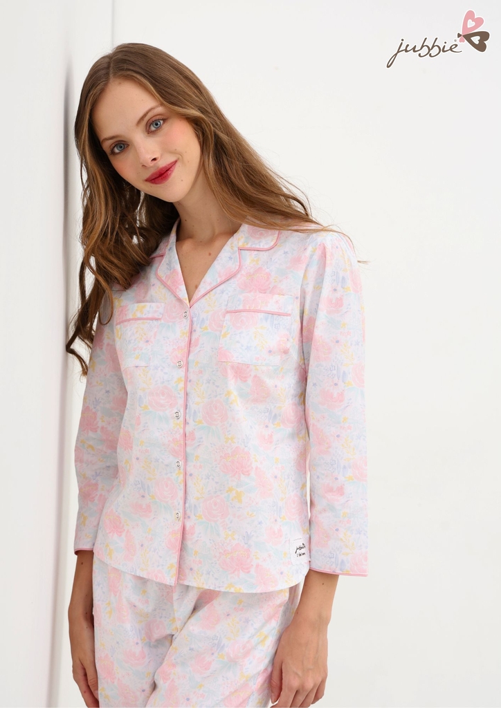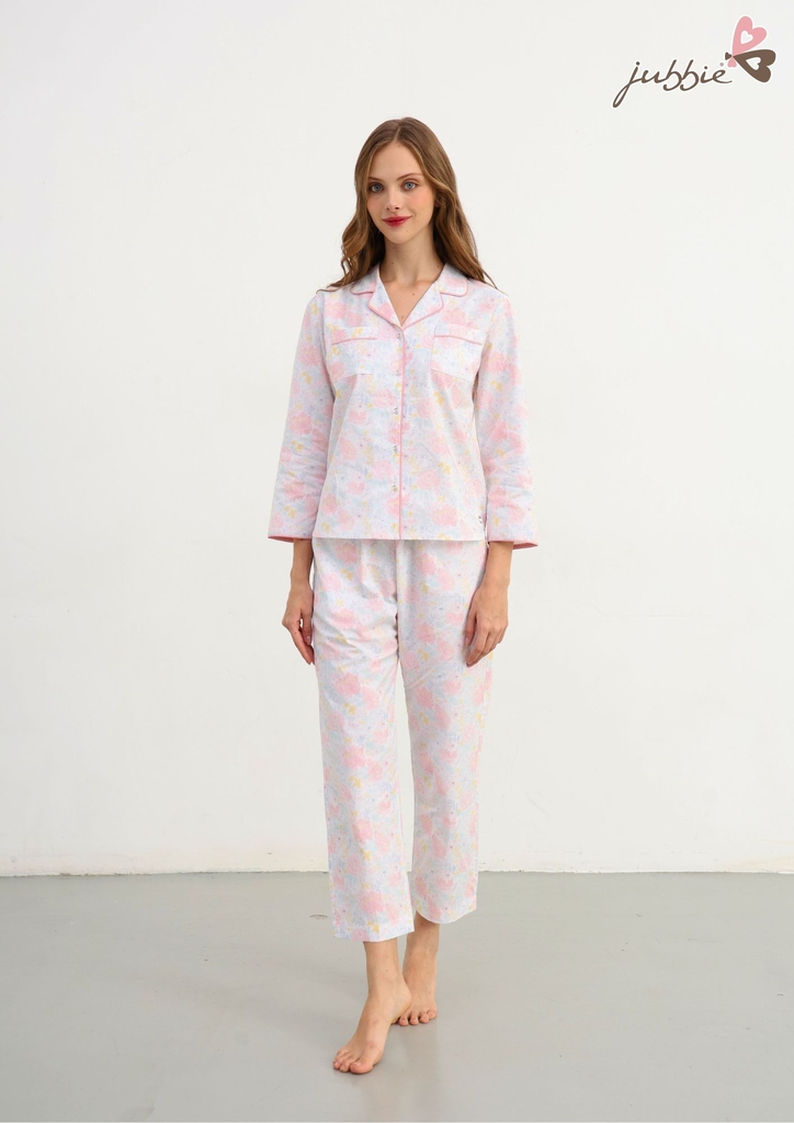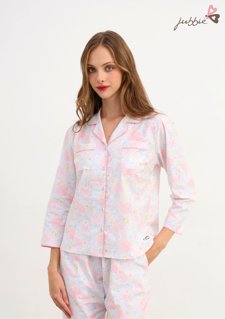Set bộ dài cổ Danton với họa tiết hoa hồng nhẹ nhàng trên nền vải thanh lịch mang lại cảm giác dịu dàng, nữ tính cho người mặc. Thiết kế cổ Danton tinh tế, dễ mặc và tôn lên nét mềm mại rất riêng của nàng.