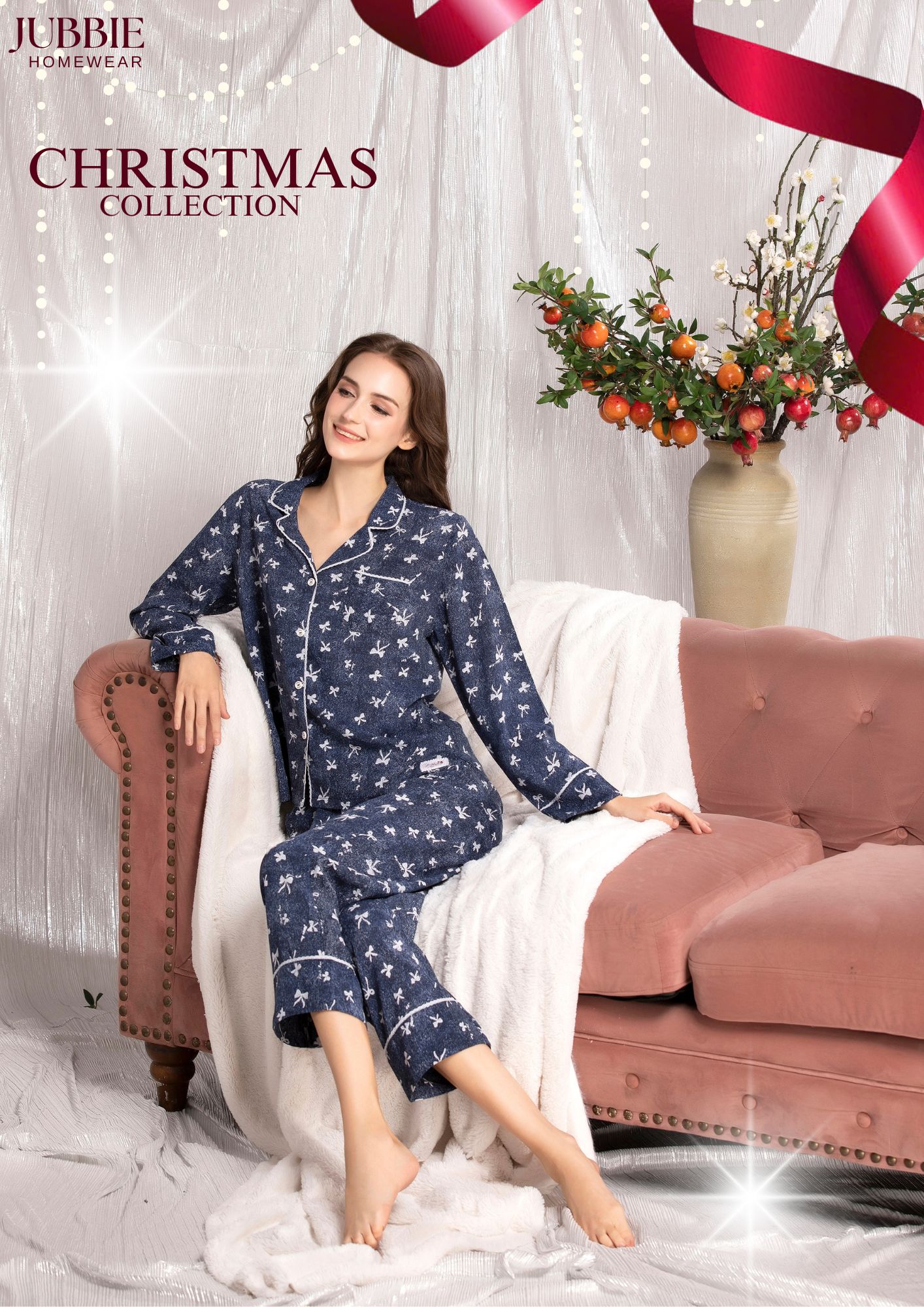 Lấy cảm hứng từ những họa tiết in nơ trắng trẻ trung, được phối hoàn hảo trên nền tông vải màu xanh dương đậm không chỉ giúp tôn da mà còn khá phù hợp cho nhiều sở thích và độ tuổi các chị em. Thiết kế phom dáng may pyjamas cổ điển, điểm nhấn may chạy viền ren khá tỉ mỉ và tinh tế giúp làm nổi bật tổng thể trang phục.