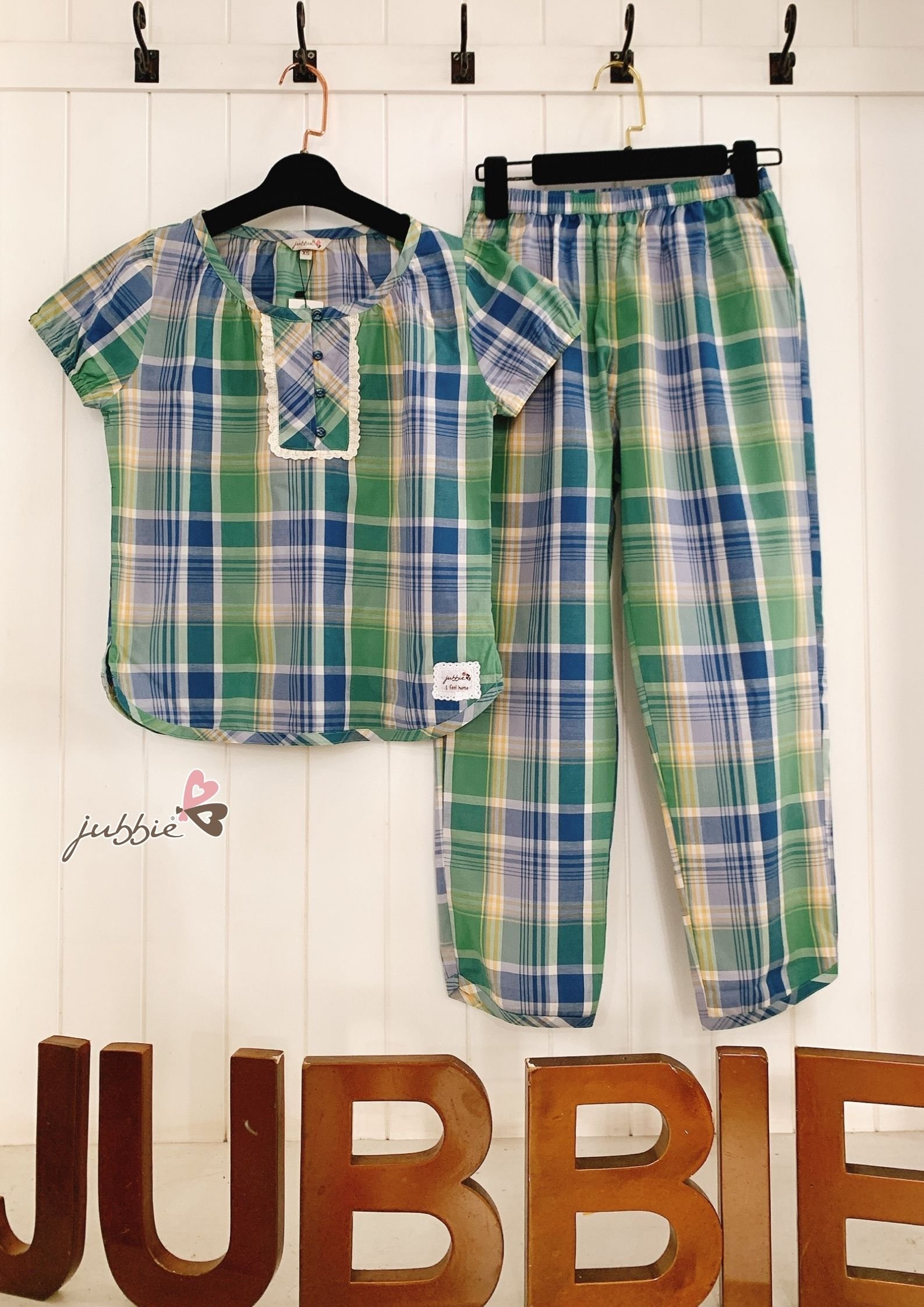 Bộ dài thanh lịch phù hợp cho nhu cầu riêng của từng chị em khi chọn lựa trang phục mặc nhà. Phiên bản caro xanh sọc luôn đi đầu xu hướng thời trang giúp tôn vóc dáng trở nên cao ráo, thanh lịch qua từng bước di chuyển.