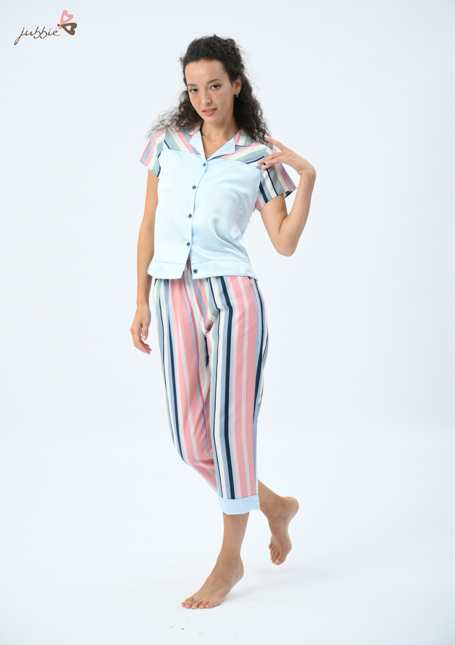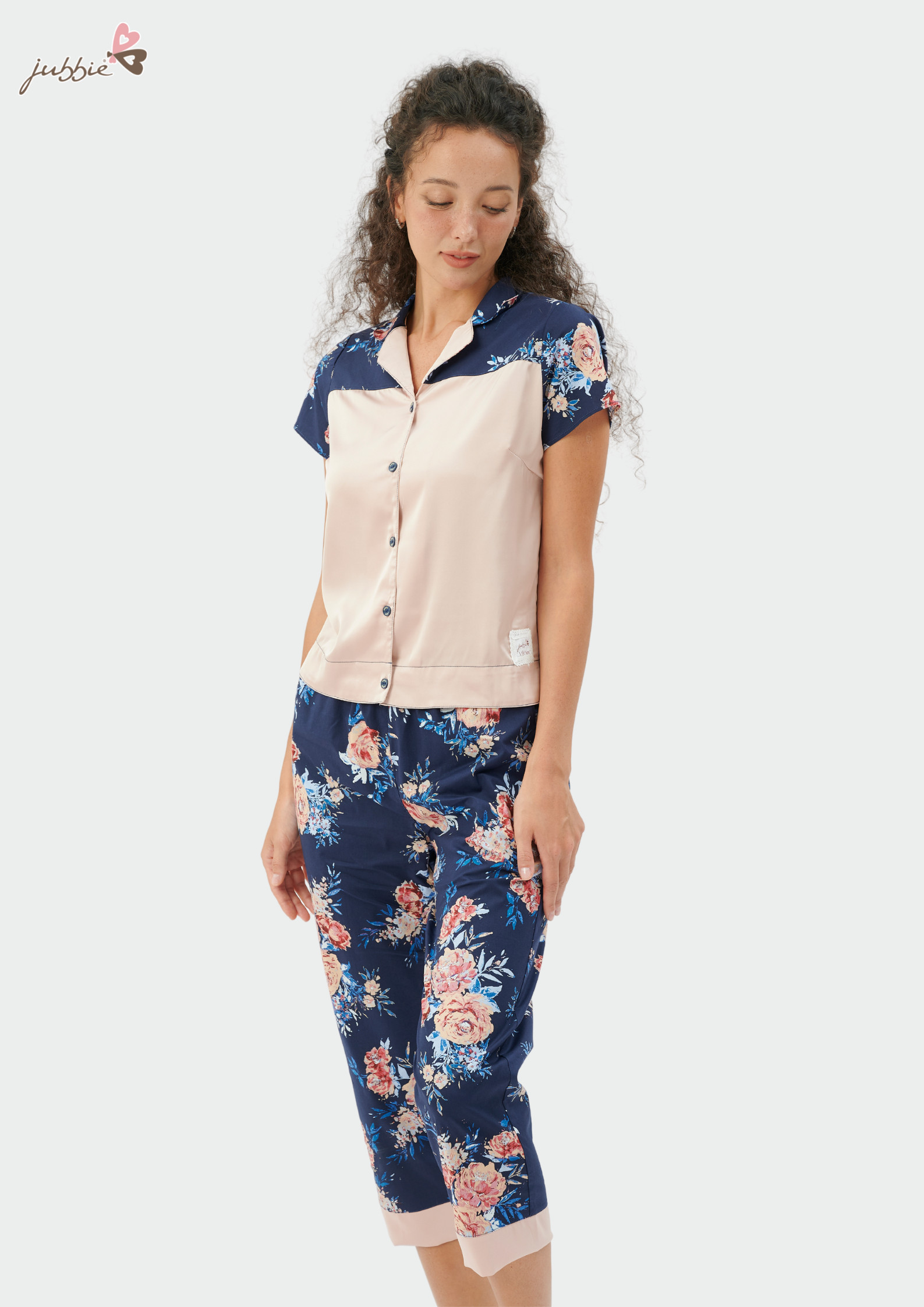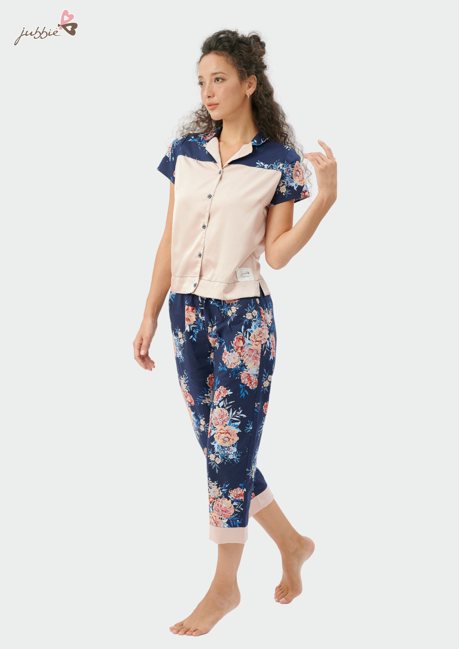 Thêm một thiết kế mới dáng lửng với nền vải in họa tiết hoa hồng khá ấn tượng tạo nét quyến rũ và duyên dáng cho người mặc. Sự mix-match giữa thân áo và quần lửng tạo nên sự hài hòa cho tổng thể bộ trang phục.