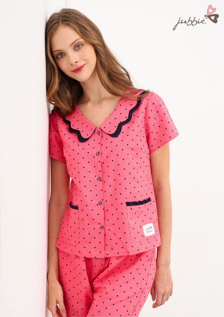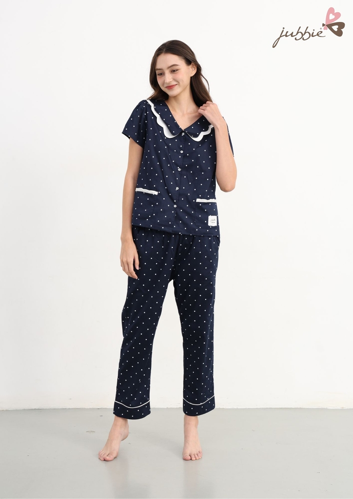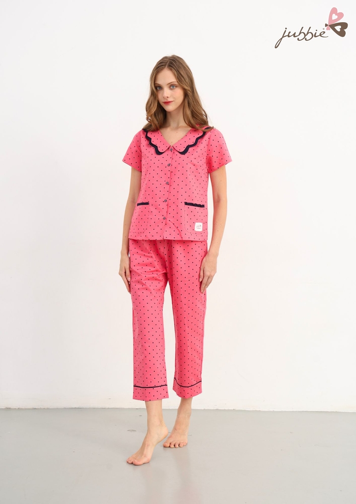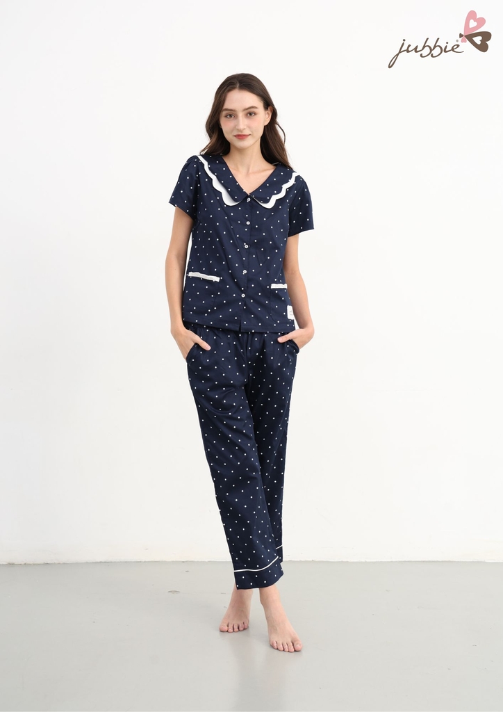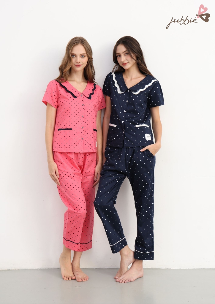 Điểm nổi bật của set couple lửng chấm bi cổ bướm 2 lớp: