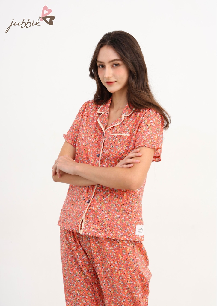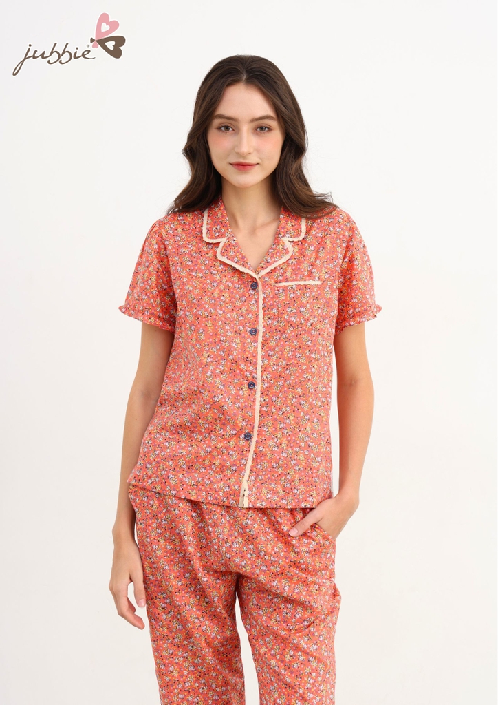 • Họa tiết hoa nhí xinh xắn trải đều trên nền cam trendy – tông màu vừa tươi tắn vừa tôn da