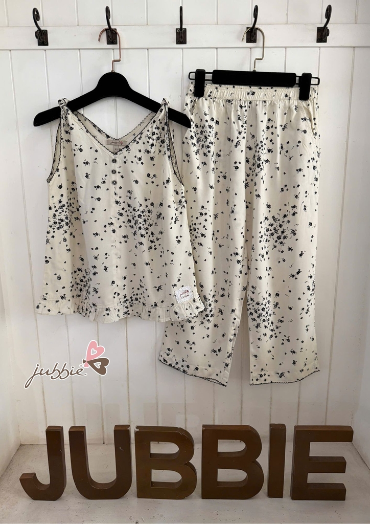 Gam màu trắng kem phối hoa nhí đen