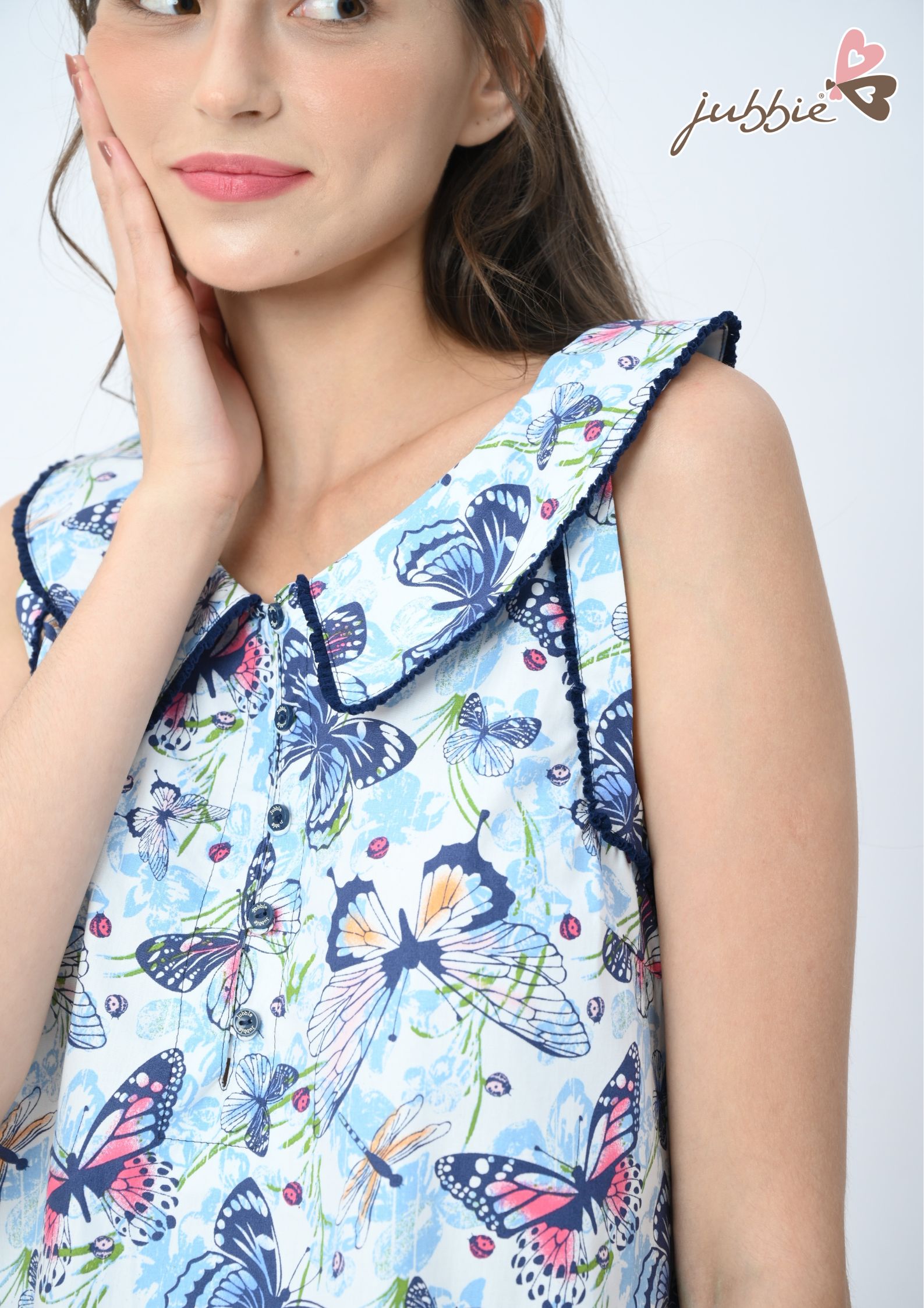 Chất liệu vải: mẫu bướm xanh100% Cotton mềm mịn, mẫu lá thông xanh là chất Tole xẹc Hàn Quốc, êm ái trên da và khá bên. Chất liệu đem lại cảm giác tự tin thoải mái khi diện trong Hè.